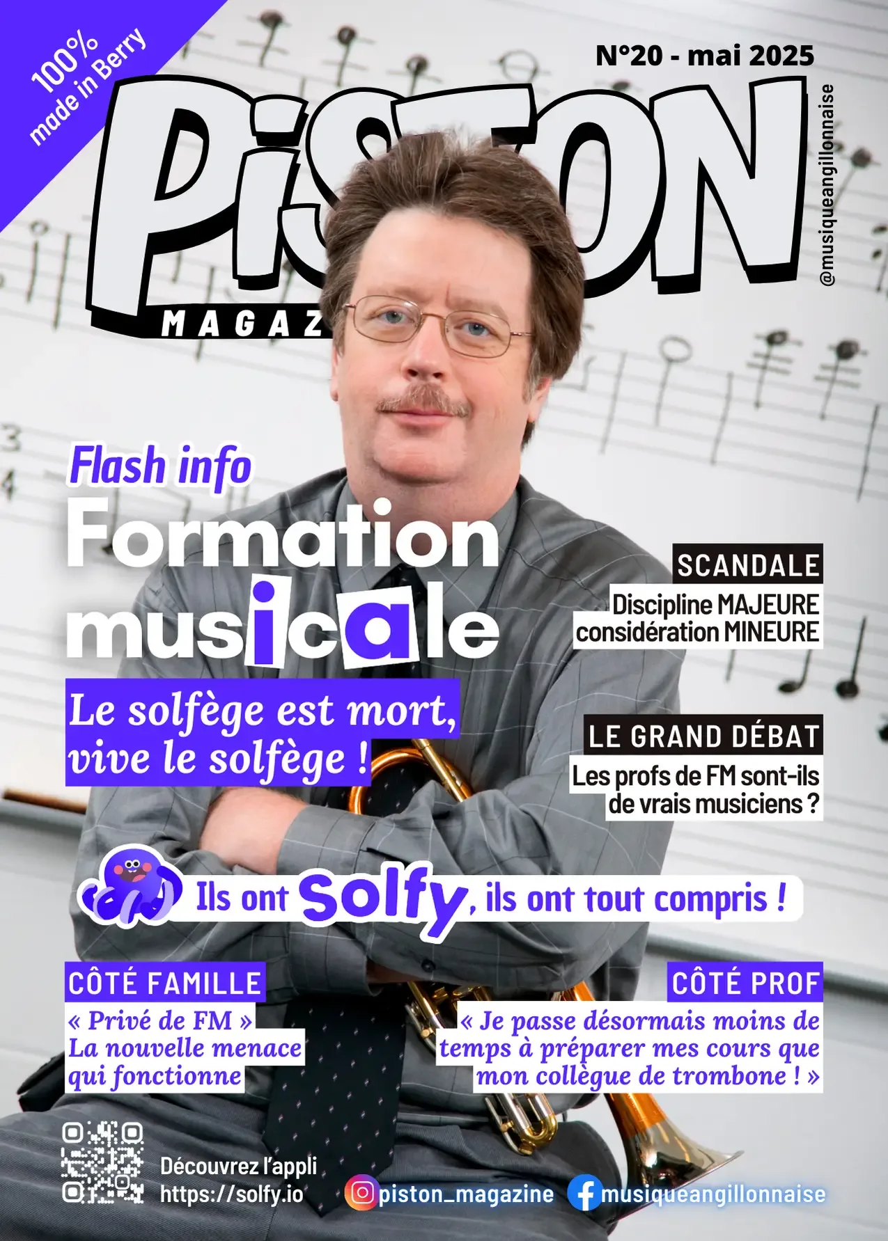 Il y a des rencontres qui sonnent juste dès la première note et c'est ce qui s'est passé entre Solfy et Piston Magazine. Ce magazine humoristique a été créé par Émilie pour animer la page Facebook de son orchestre d'harmonie et chaque nouveau numéro fait le buzz dans le monde de la musique amateur.